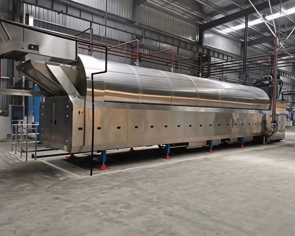 It works continuously (or in batches) and is mostly used in places like textile factories, laundromats, and industrial laundry operations, where processing large quantities of fabric or clothing is essential.